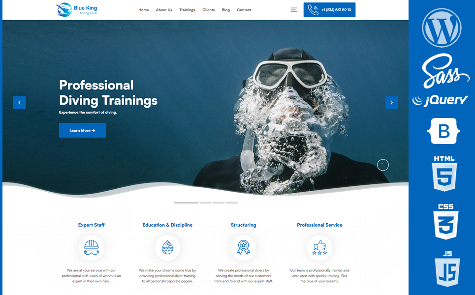 You will have a special diving club theme that is shaped according to all responsive compatible devices.