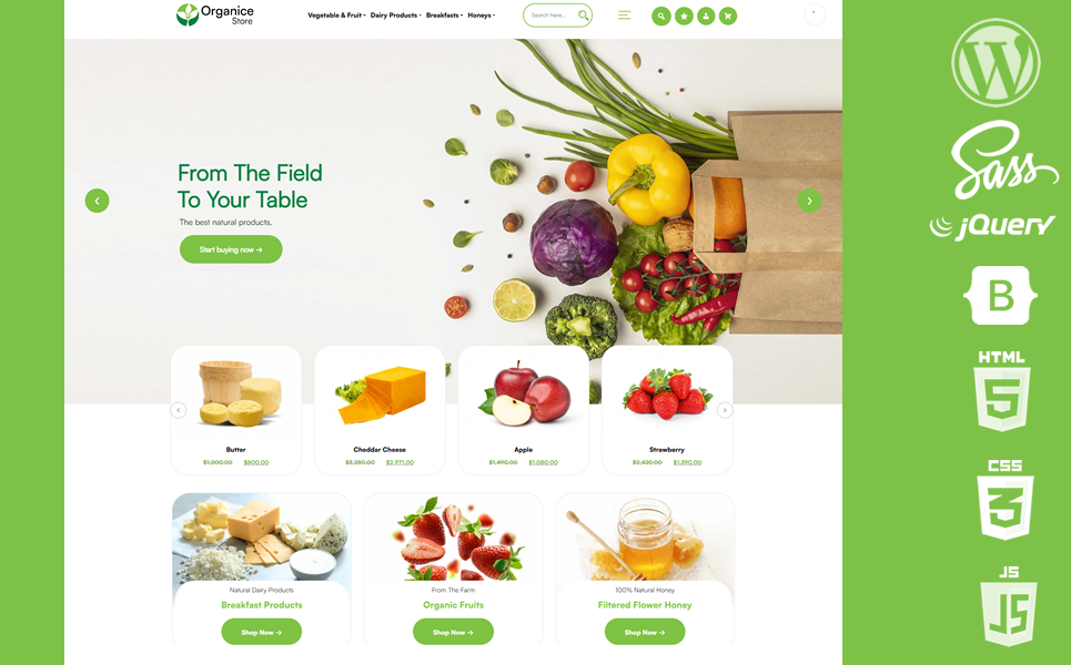 Nom du template : Organice - Organic Food Store WooCommerce WordPress Store
