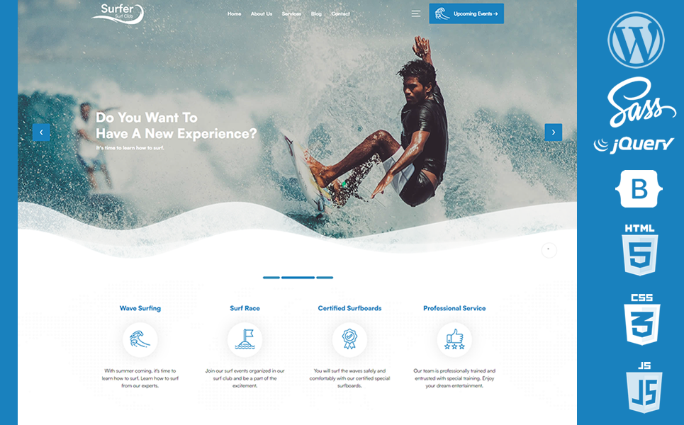 If you are looking for a wordpress theme for your Surf Club you will have an innovative and unique design with this template.