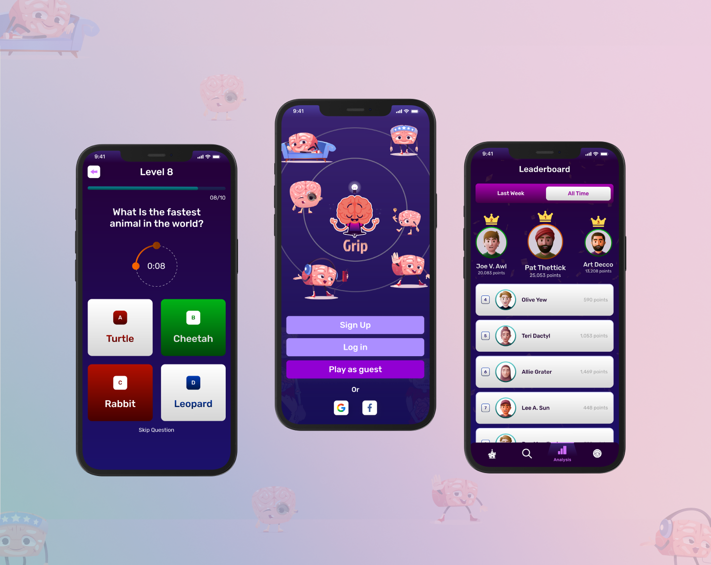 Nom du template : Grip Quiz - Mobile Application Figma Kit