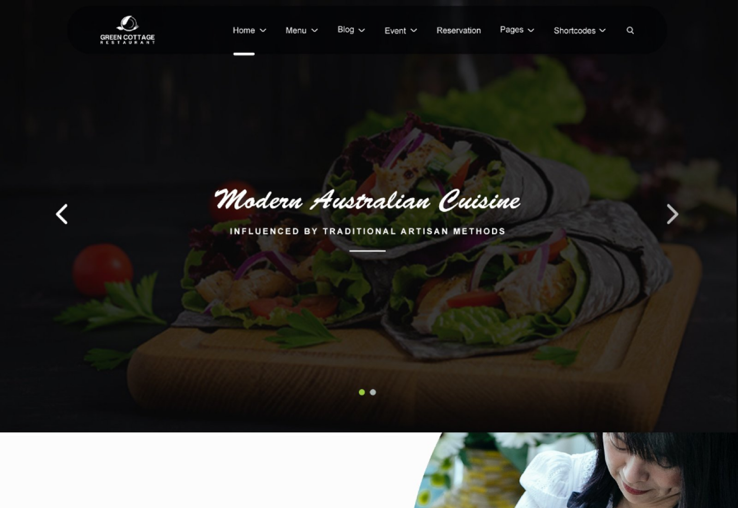Nom du template : Green Cottage - Restaurant Website PSD Template