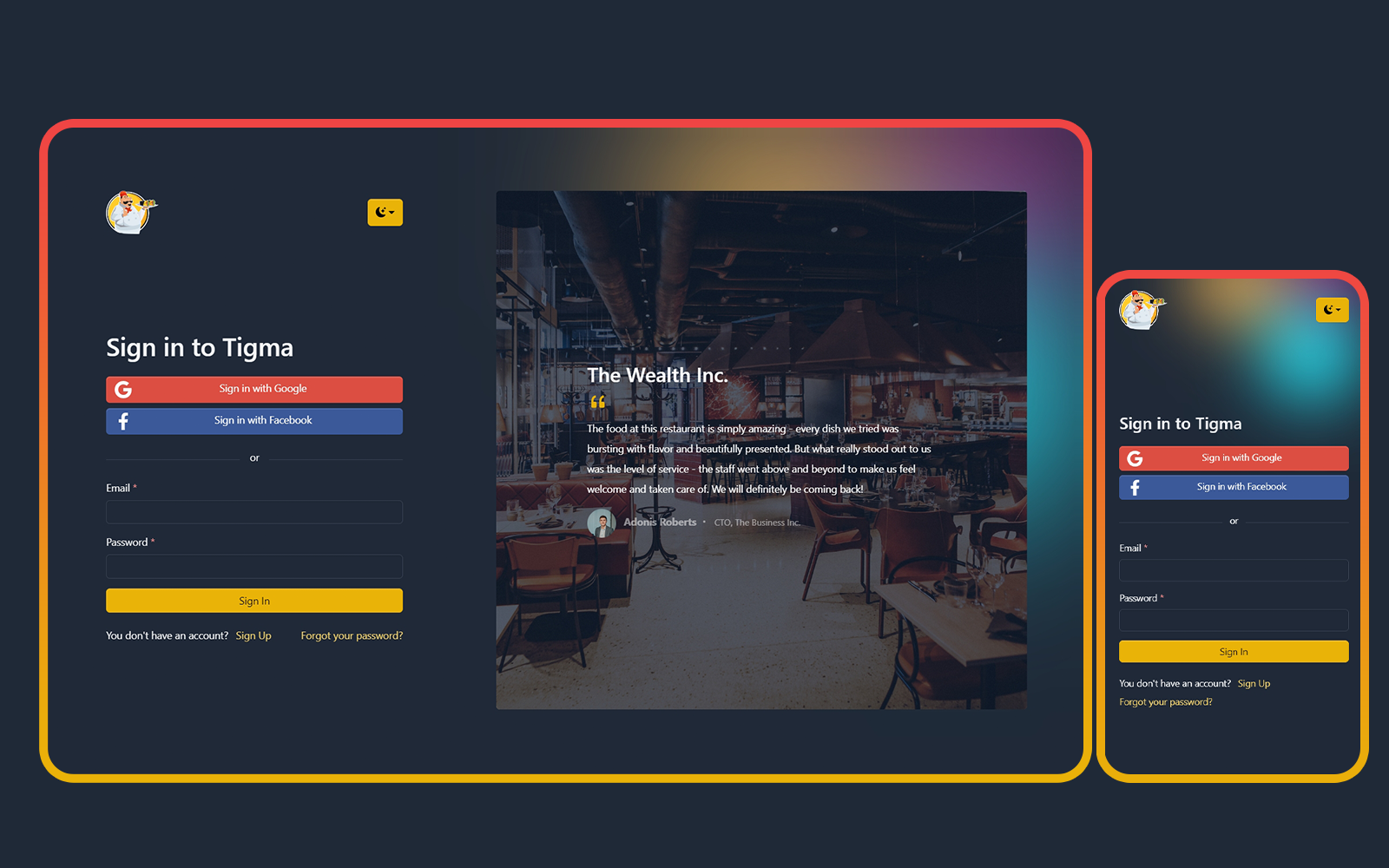 Extrait : Looking for a modern, secure, and stunning template for your restaurant's sign-in, sign-up, reset password, and 2FA security pages?