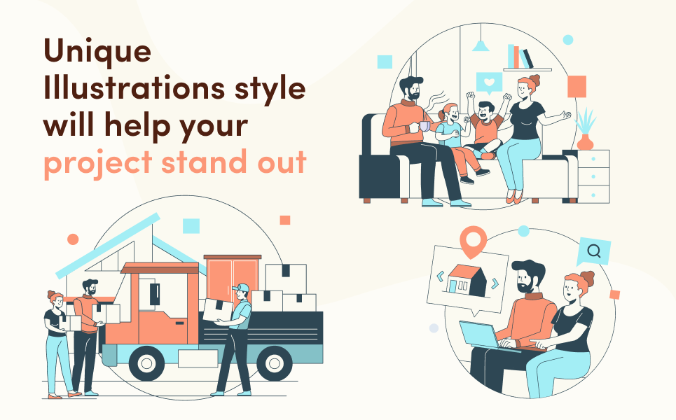 Estately is a pack of custom illustrations suitable for any Real Estate & Property niche. Made fully-layered and separated vector objects. Perfect for UI/UX design, presentation, advertising, and many more.