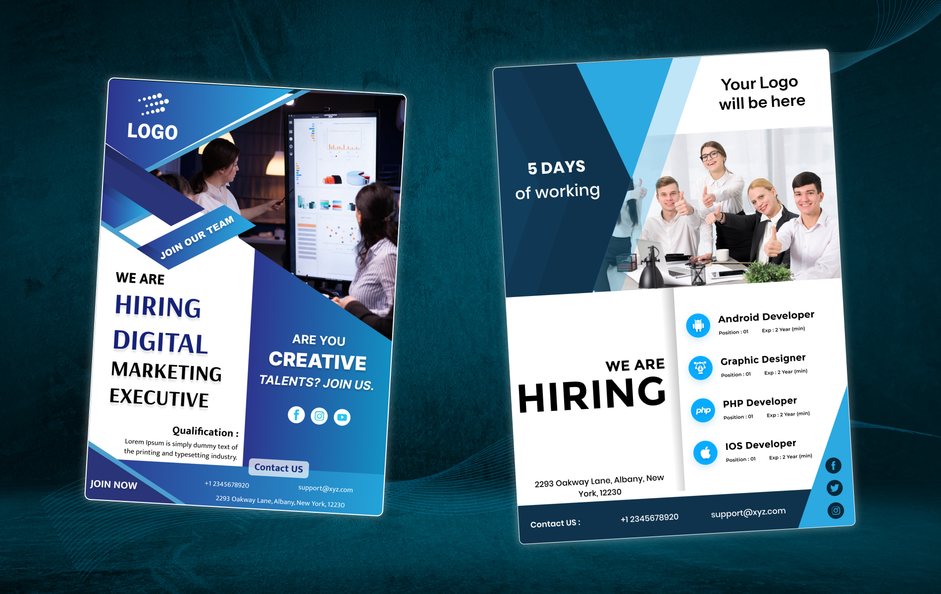 Short description : Hiring Post - Flyer Design Template is bringing unique design concept for Hiring Flyer designs which needs for getting attraction regarding Hiring Employees in corporate world. It's very easy to use and customize. In this modern world every big companies, small companies requires employees and for that hiring process we bring this Flyer design concept with professional and good-looking flyers. Pls checkout our brand-new Hiring Post - Flyer Design Template Concept.