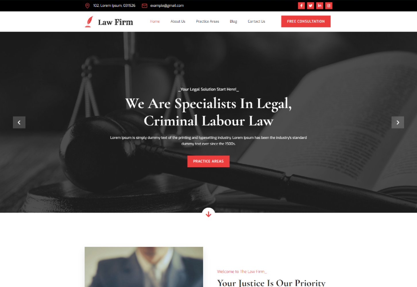 livePreviewURL : https://templatekits.techeshta.com/lawfirm/