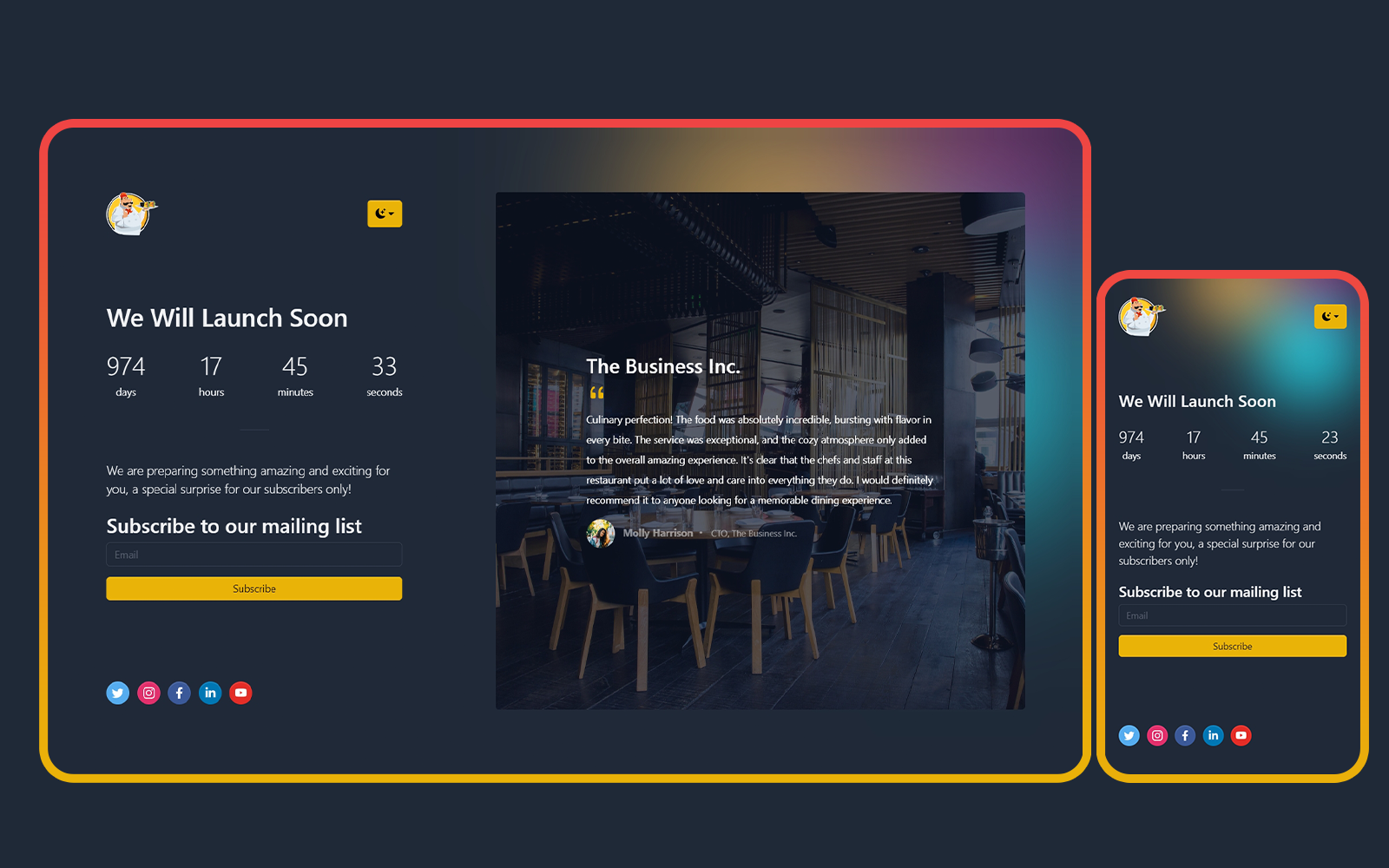 Of course, it's also important to make sure that your page looks great no matter what device your customers are using. Thankfully, the TastyComing template is fully responsive, meaning it will look great on every device from desktops to smartphones. And also it features both light and dark modes to accommodate users' preferences and lighting environments.