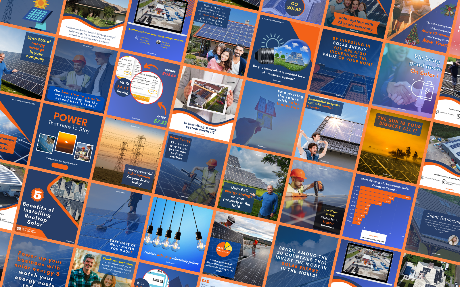 50 professionally designed Solar Energy Social Media posts for Solar Energy Solution Providers, and Digital Marketers to attract new leads, grow followers, and close deals.